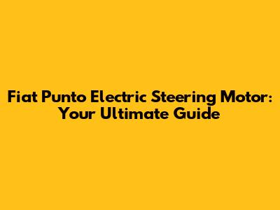 Understanding the Electric Steering Motor in Your Fiat Punto
