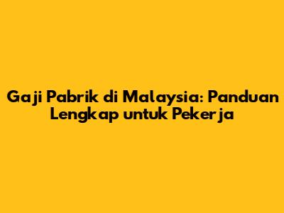 Gaji Pabrik Di Malaysia: Panduan Lengkap Untuk Pekerja