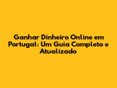 Ganhe Dinheiro Online Em Portugal: Guia Completo E Atualizado