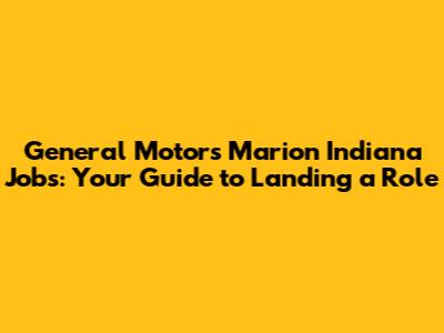 GM Jobs In Marion, Indiana: Your Guide To Landing A Role