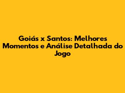 Goiás X Santos: Melhores Momentos E Análise Do Jogo