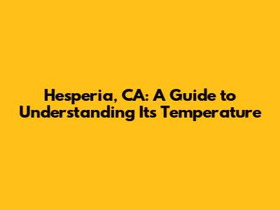 Hesperia, CA: A Guide To Understanding Its Temperature