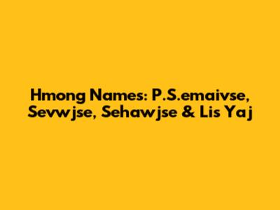 Hmong Names: P.S.emaivse, Sevwjse, Sehawjse & Lis Yaj