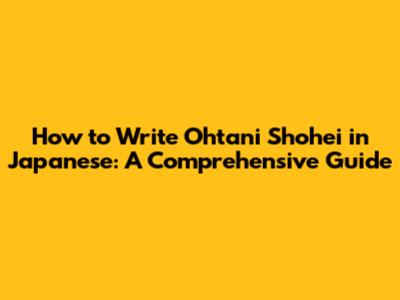 How To Write Ohtani Shohei In Japanese: A Comprehensive Guide