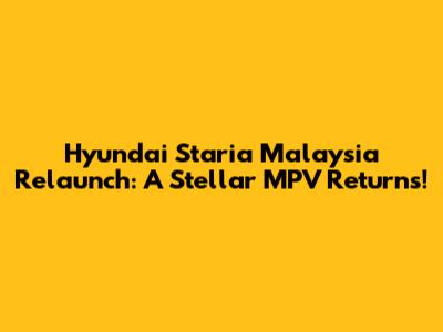 Hyundai Staria Malaysia Relaunch: A Stellar MPV Returns!