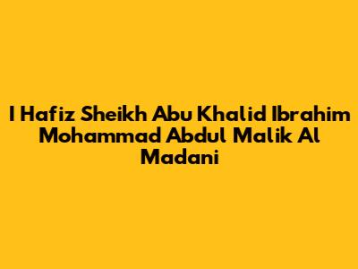 I Hafiz Sheikh Abu Khalid Al Madani: A Comprehensive Overview