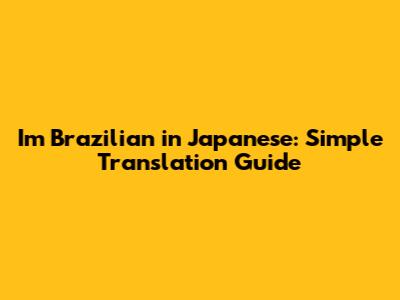 I'm Brazilian In Japanese: Simple Translation Guide