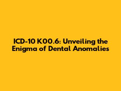 Hey there, health enthusiasts! Let's dive deep into the world of dental health and explore the fascinating, yet sometimes perplexing, realm of ICD-10 K00.6. This specific code in the International Classification of Diseases, 10th Revision, refers to other disorders of tooth development and eruption. In simpler terms, we're talking about those quirky, unusual, and sometimes unexpected ways our teeth decide to make an appearance or, well, not quite make an appearance as expected. This comprehensive guide will break down everything you need to know about ICD-10 K00.6, from the nitty-gritty causes to the telltale symptoms and the various treatment options available. So, buckle up, grab your dental floss (just kidding... or am I?), and let's get started!