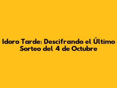 Análisis Detallado del Sorteo del 4 de Octubre de Idoro Tarde