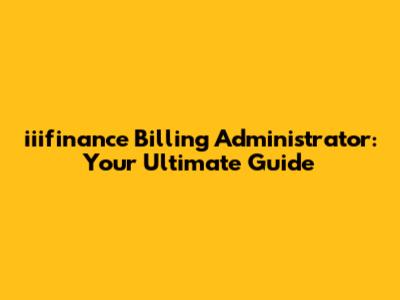 Iiifinance Billing Administrator: Your Guide