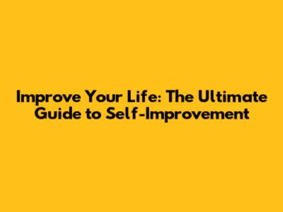 Improve Your Life: The Ultimate Guide To Self-Improvement