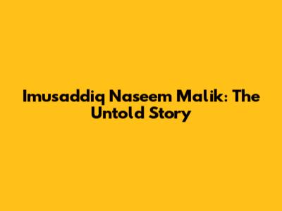 Imusaddiq Naseem Malik: The Untold Story
