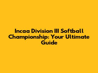 Incaa Division III Softball Championship: A Comprehensive Guide