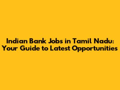 Indian Bank Jobs In Tamil Nadu: Latest Updates