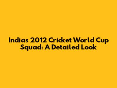 India's 2012 Cricket World Cup Squad: A Detailed Look