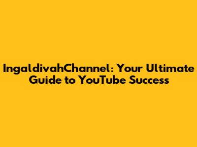 IngaldivahChannel: Your Ultimate Guide To YouTube Success