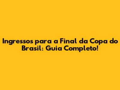 Ingressos Para A Final Da Copa Do Brasil: Guia Completo!