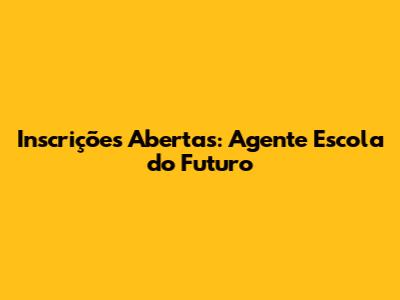 Inscrições Abertas: Agente Escola Do Futuro