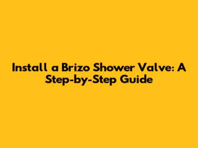 Install A Brizo Shower Valve: A Step-by-Step Guide