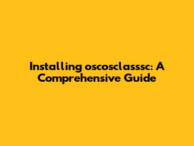 Installing Oscosclasssc: A Comprehensive Guide