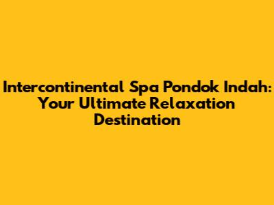 Hey guys! Ever feel like you need a serious break from the hustle and bustle of life? Do you dream of a place where you can unwind, recharge, and completely forget about your worries? Well, if you're in Jakarta, Indonesia, you're in luck! I'm here to tell you all about the Intercontinental Spa Pondok Indah, a true oasis of tranquility and a must-visit for anyone seeking a luxurious spa experience. This place isn't just a spa; it's an escape, a haven, and a journey into pure relaxation. Ready to dive in? Let's go!