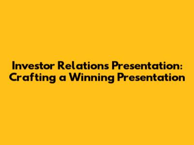 Investor Relations: Crafting A Winning Presentation