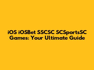 IOS IOSBet SSCSC SCSportsSC Games: Your Ultimate Guide