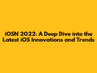 IOSN 2022: Unveiling The Latest Trends & Innovations