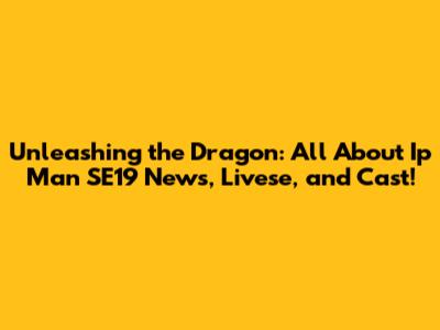 Ip Man SE19: Cast News & Updates