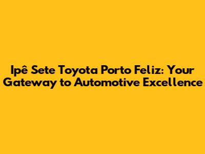 Hey there, car enthusiasts and future Toyota owners! Welcome to the inside scoop on Ipê Sete Toyota Porto Feliz, your go-to destination for all things Toyota in the vibrant city of Porto Feliz, Brazil. This article is your ultimate guide, packed with the latest news, updates, and insights to keep you informed about the exciting world of Toyota and the exceptional services offered by Ipê Sete. We'll dive into everything from the newest vehicle releases and promotions to the top-notch maintenance and customer service that makes Ipê Sete a standout dealership. So, buckle up and get ready to explore the exciting realm of Ipê Sete Toyota Porto Feliz! This is where you'll find the information you need, whether you're considering buying a new car, scheduling a service appointment, or just staying up-to-date on the automotive scene. Let's get started, shall we?