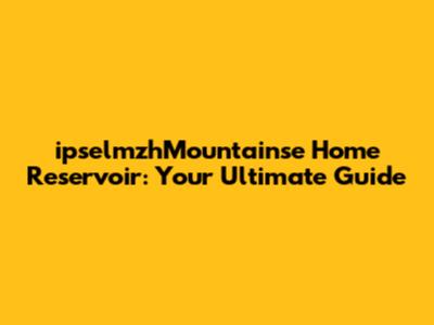 IpselmzhMountainse Home Reservoir: Your Ultimate Guide