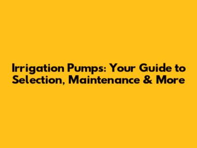 Irrigation Pumps: Your Guide To Selection, Maintenance & More