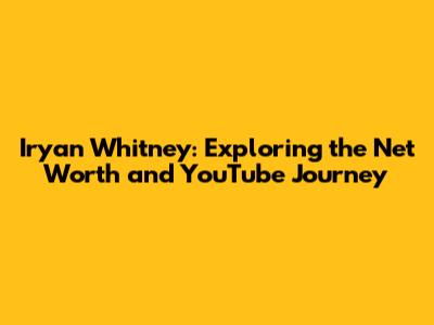 Iryan Whitney: Net Worth, Career, And YouTube Success