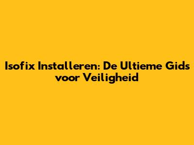Isofix Installeren: De Ultieme Gids Voor Veiligheid