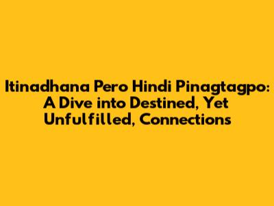 This concept isn't just a romantic notion; it touches upon the very fabric of how we understand life, love, and loss. It's a testament to the belief that some forces are bigger than us, that destiny can play a significant role in our lives, even if that role isn't always what we expect or desire. It highlights the beauty of the "what ifs" and the acceptance that some doors are meant to remain closed. Exploring "Itinadhana Pero Hindi Pinagtagpo" allows us to examine our own experiences with missed connections, unrequited feelings, and the profound impact that such encounters can have on our emotional landscape. So, grab a cup of coffee (or your favorite beverage), settle in, and let's unravel this intriguing phenomenon together.