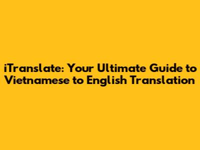 ITranslate: Your Guide To Vietnamese To English Translation
