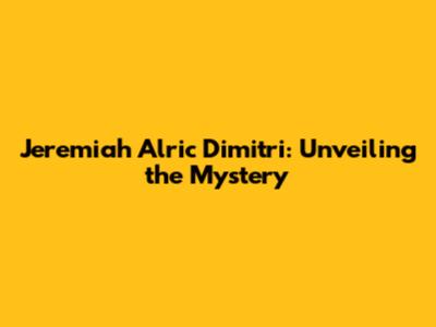 Jeremiah Alric Dimitri: Unveiling The Mystery