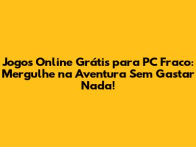 Jogos Online Grátis Para PC Fraco: Diversão Sem Limites!