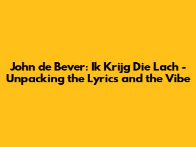 Hey guys! Today we're diving deep into a song that's probably stuck in your head, or at least brought a smile to your face: "Ik krijg die lach" by the one and only John de Bever. This isn't just any Dutch schlager hit; it's a full-on anthem of pure, unadulterated joy and maybe a little bit of cheeky defiance. If you've ever felt that uncontrollable urge to just burst out laughing, to embrace a moment of happiness no matter what, then this song is speaking your language. We're going to break down what makes this track so infectious, explore the lyrics, and figure out why John de Bever is the king of spreading good vibes. So, grab a drink, get comfortable, and let's get into it!