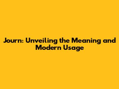 Journ: Unveiling The Meaning And Modern Usage