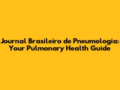 Journal Brasileiro De Pneumologia: Your Pulmonary Health Guide
