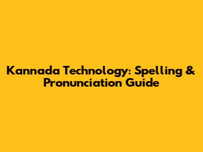 Kannada Technology: Spelling & Pronunciation Guide