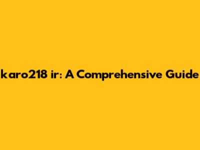 Karo218 Ir: A Comprehensive Guide