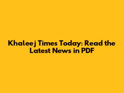 Khaleej Times Today: Read The Latest News In PDF