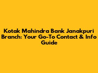 Kotak Mahindra Bank Janakpuri Branch: Contact & Info