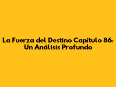 ¡Hola a todos los fans de La Fuerza del Destino! Prepárense porque vamos a sumergirnos en el capítulo 86, un episodio lleno de emociones y giros inesperados. En este análisis, exploraremos los momentos clave, los personajes y el impacto que este capítulo tiene en la trama general. Así que, ¡ajustad vuestros cinturones y acompáñenme en este viaje!