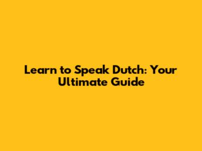 Learn To Speak Dutch: Your Ultimate Guide