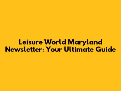 Leisure World Maryland: Stay Updated With Our Newsletter