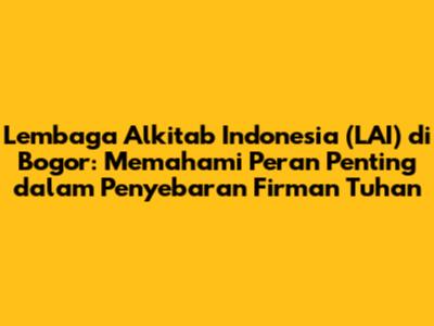 Hai teman-teman! Pernahkah kalian mendengar tentang Lembaga Alkitab Indonesia (LAI)? Nah, kali ini kita akan membahas lebih dalam mengenai LAI, khususnya yang berlokasi di Bogor. Kalian akan diajak untuk menjelajahi sejarahnya, memahami misi mulianya, serta mengetahui peran pentingnya dalam penyebaran Firman Tuhan di Indonesia. Jadi, siapkan diri kalian untuk mendapatkan informasi yang menarik dan bermanfaat!