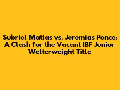 Guys, get ready for a fire matchup! Subriel Matias and Jeremias Ponce are set to collide in a highly anticipated bout for the vacant IBF junior welterweight title. This fight promises to be an absolute barnburner, with both fighters known for their aggressive styles and knockout power. Let's dive deep into what makes this fight so intriguing and who might just walk away with the belt.